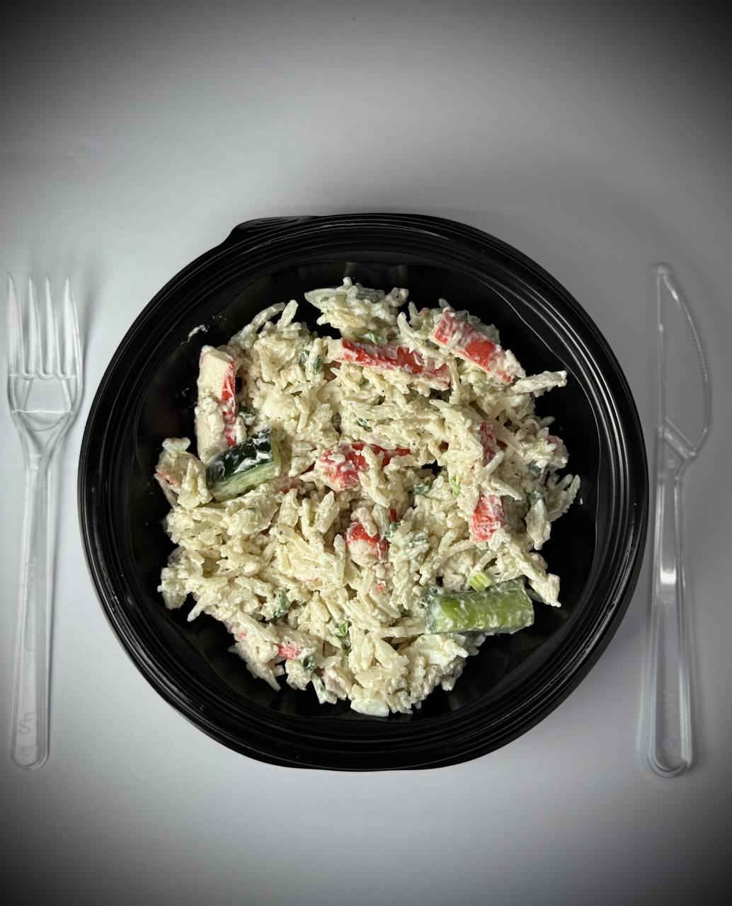 ჩვენს სალათში ზღვის პროდუქტების სიგანე ერწყმის ბალანსირებულ ინგრედიენტებს. უმაღლესი ხარისხის კრაბის ხორცი, ფუმფულა ბრინჯი, რბილად მოხარშული კვერცხი, ქორფა და ხრაშუნა კიტრი, ყველაფერი ეს ნაზად ერთიანდება მაიონეზის მსუბუქ კრემში. შედეგი — სრულყოფილი გემო, რომელიც გათბობს, გაგაგრილებს და დაგამშვიდებს ერთდროულად.